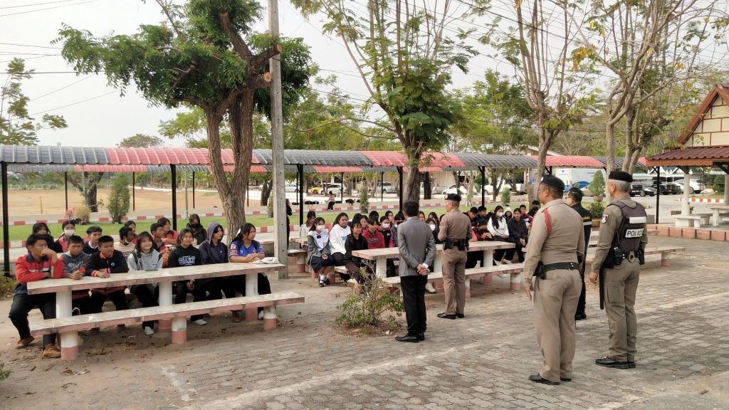 พ.ต.อ.สมมาตย์ มั่งไธสง ผกก.สภ.แวงน้อย พร้อมด้วย แวงน้อย 20 ชุดสายตรวจ เป็นวิทยากรบรรยายให้ความรู้ความเข้าใจ เกี่ยวกับกลโกงมิจฉาชีพในโลกออนไลน์ แก่เด็กนักเรียน คณะครูและบุคลากรทางการศึกษา ณ ข้างลานหน้าเสาธงโรงเรียนแวงน้อยศึกษา ต.แวงน้อย อ.แวงน้อย