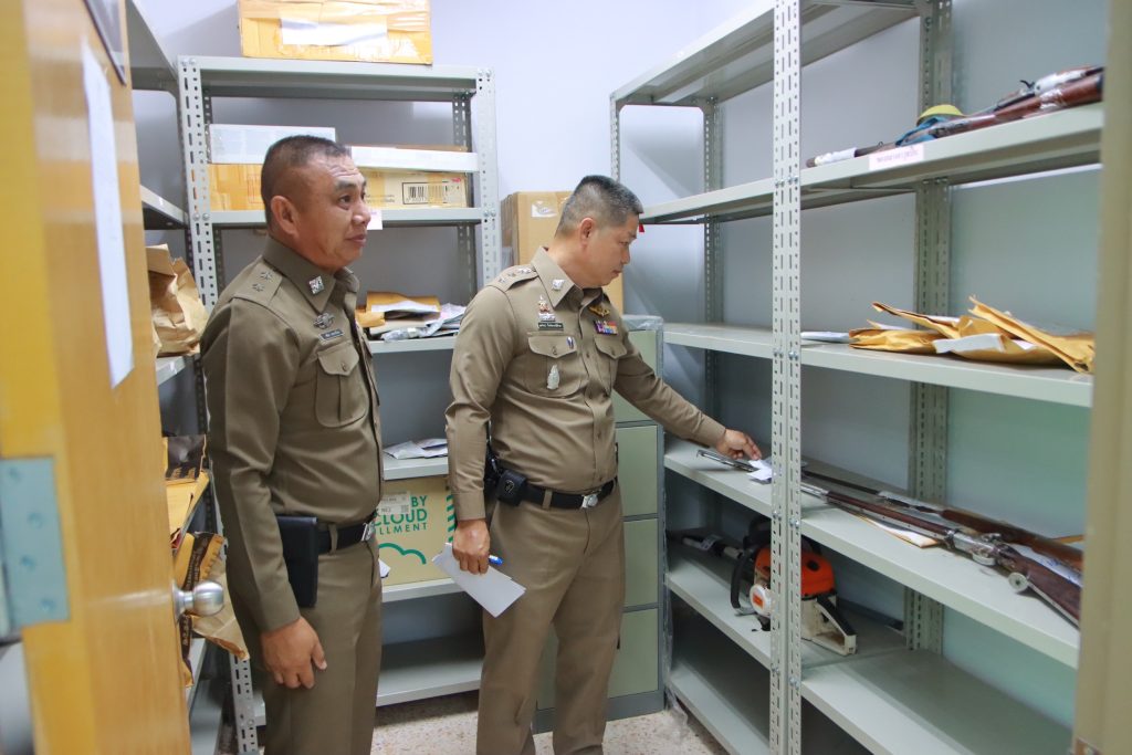 พร้อมกำชับให้ ตรวจสอบวิธีการจัดเก็บ การดูรักษา ให้ของกลางอยู่ในสภาพสมบูรณ์พร้อมกำชับเรื่องการรักษาความปลอดภัยในห้องเก็บของกลาง ต้องมีกุญแจล็อค กล้องวงจรปิดต้องสามารถใช้การได้ หากส่วนใดชำรุดให้ตรวจสอบแก้ไขทันที