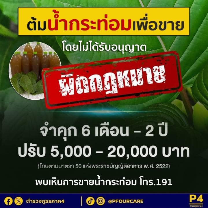 ต้มน้ำกระท่อมขาย!!ต้องติดคุก ต้มเพื่อขายโดยไม่ได้รับอนุญาตผิดกฏหมายนะรู้ยัง? โทษจำคุก 6 เดือน –