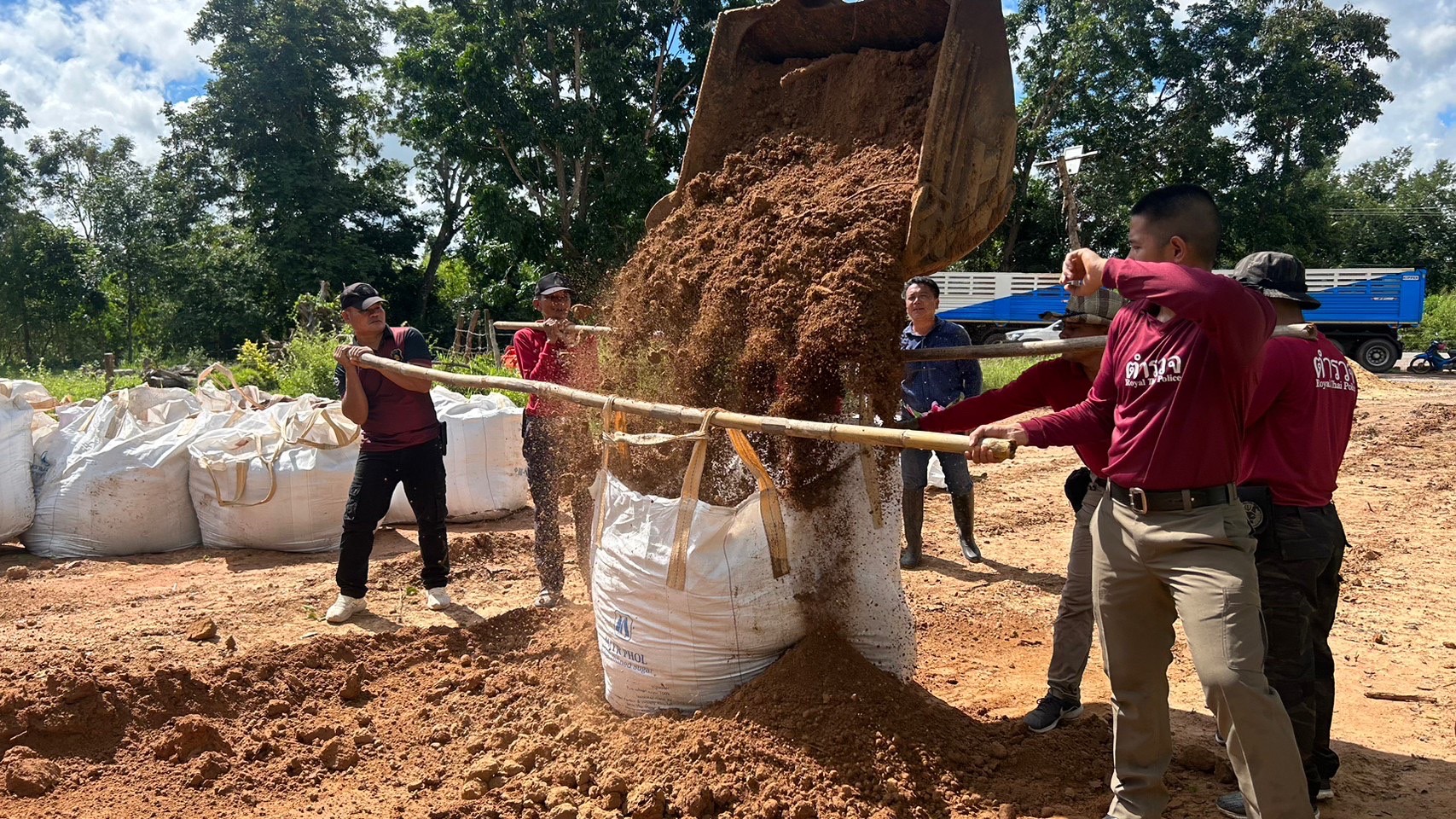 ชมส.สภ.แวงน้อย ทำ”บิ๊กแบก” สำหรับนำไปปิดท่อน้ำเพื่อชะลอการไหลของน้ำ