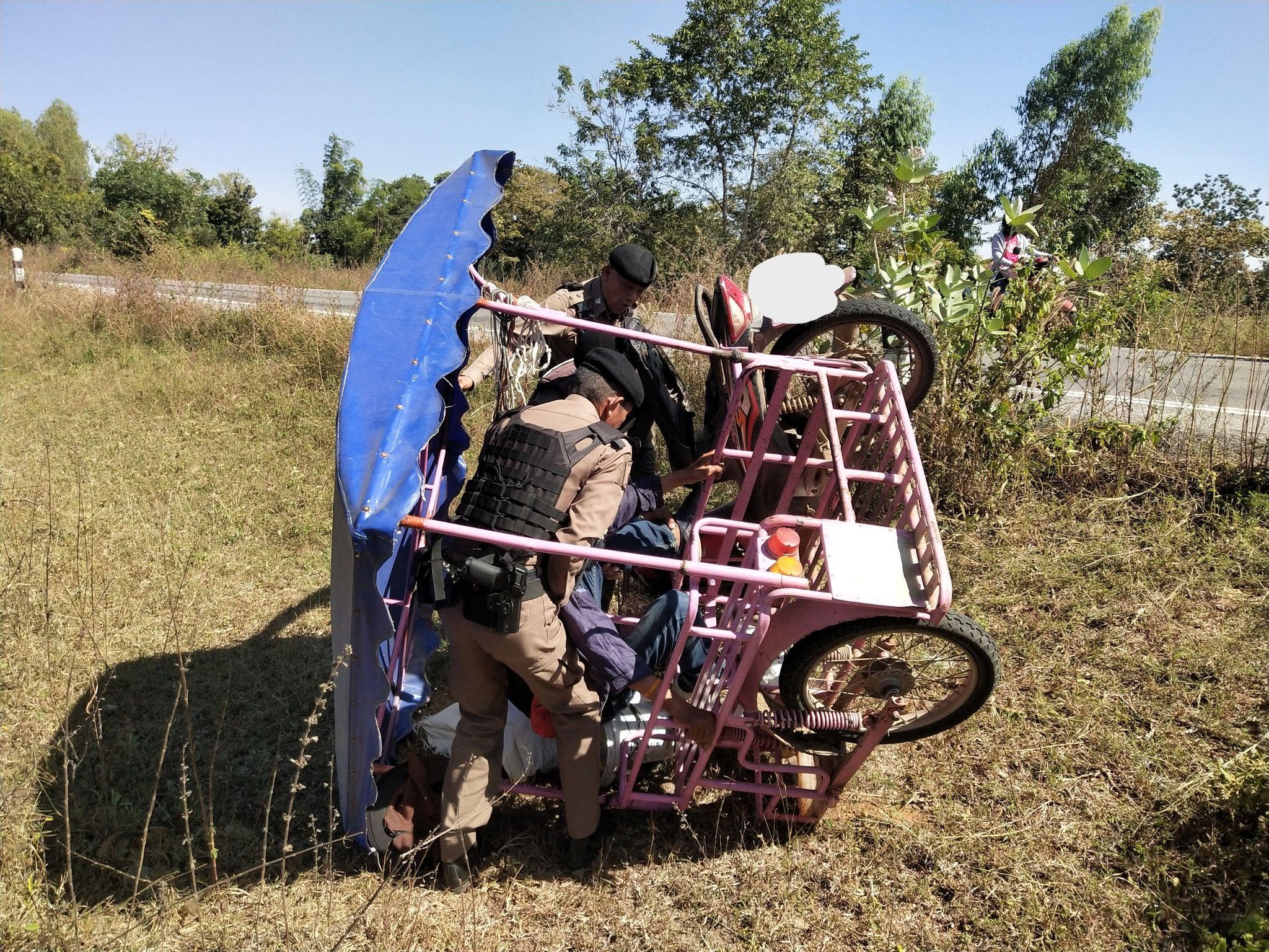ตำรวจสายตรวจ สภ.แวงน้อย ช่วยเหลือคนขับรถจักรยานยนต์พลัดตกลงข้างทาง